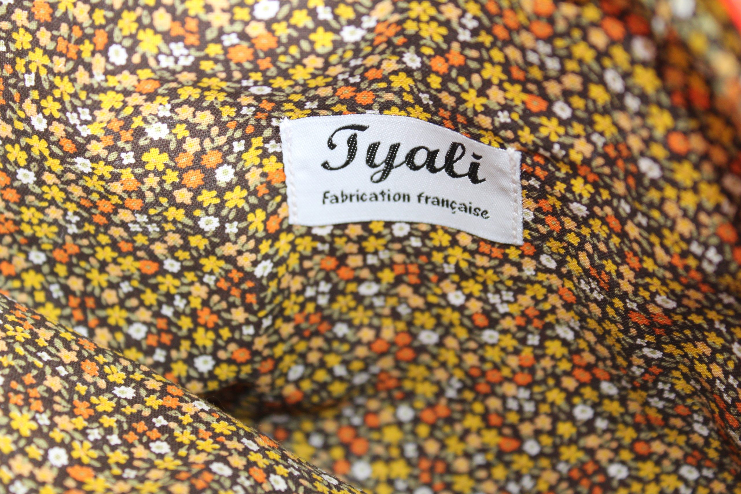 La doublure est surmontée d’une étiquette avec l’inscription « Tyali Fabrication française ».